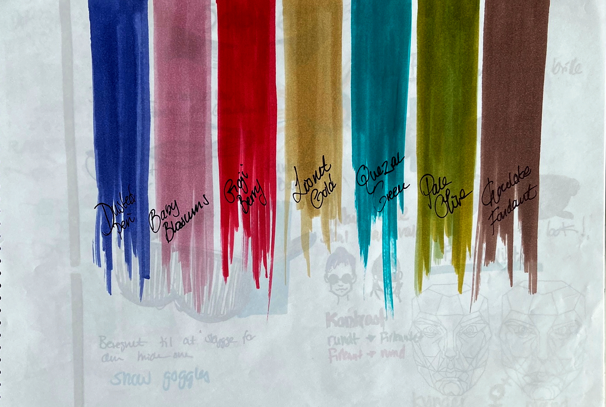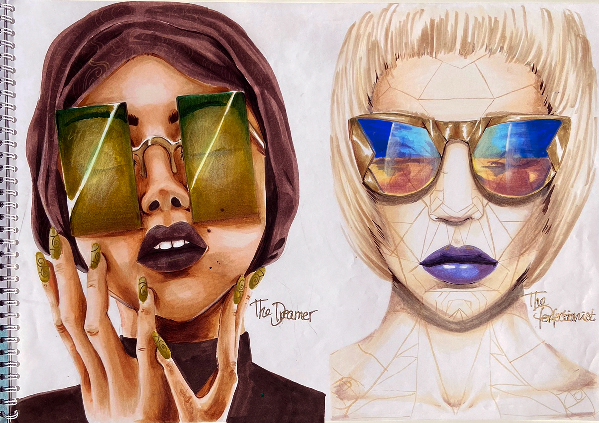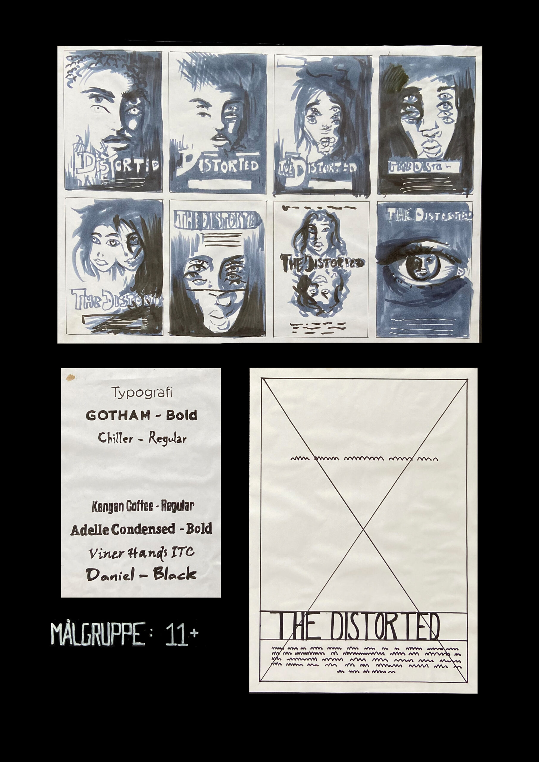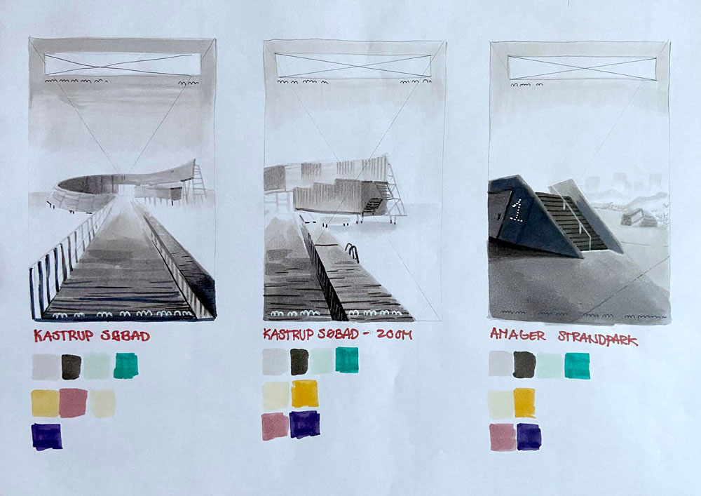 Skitsefase 1 + 2 er lavet med Copic Markers