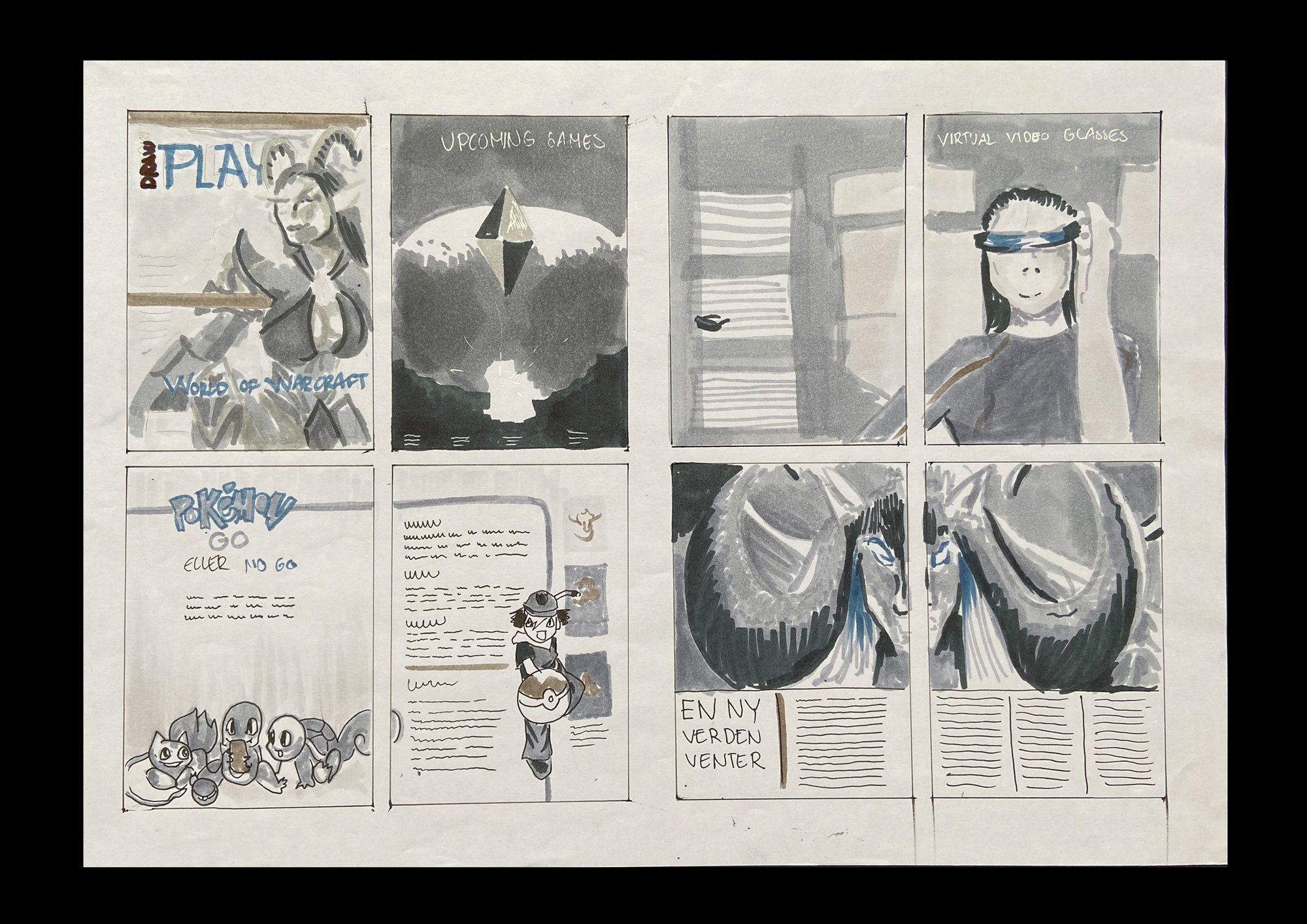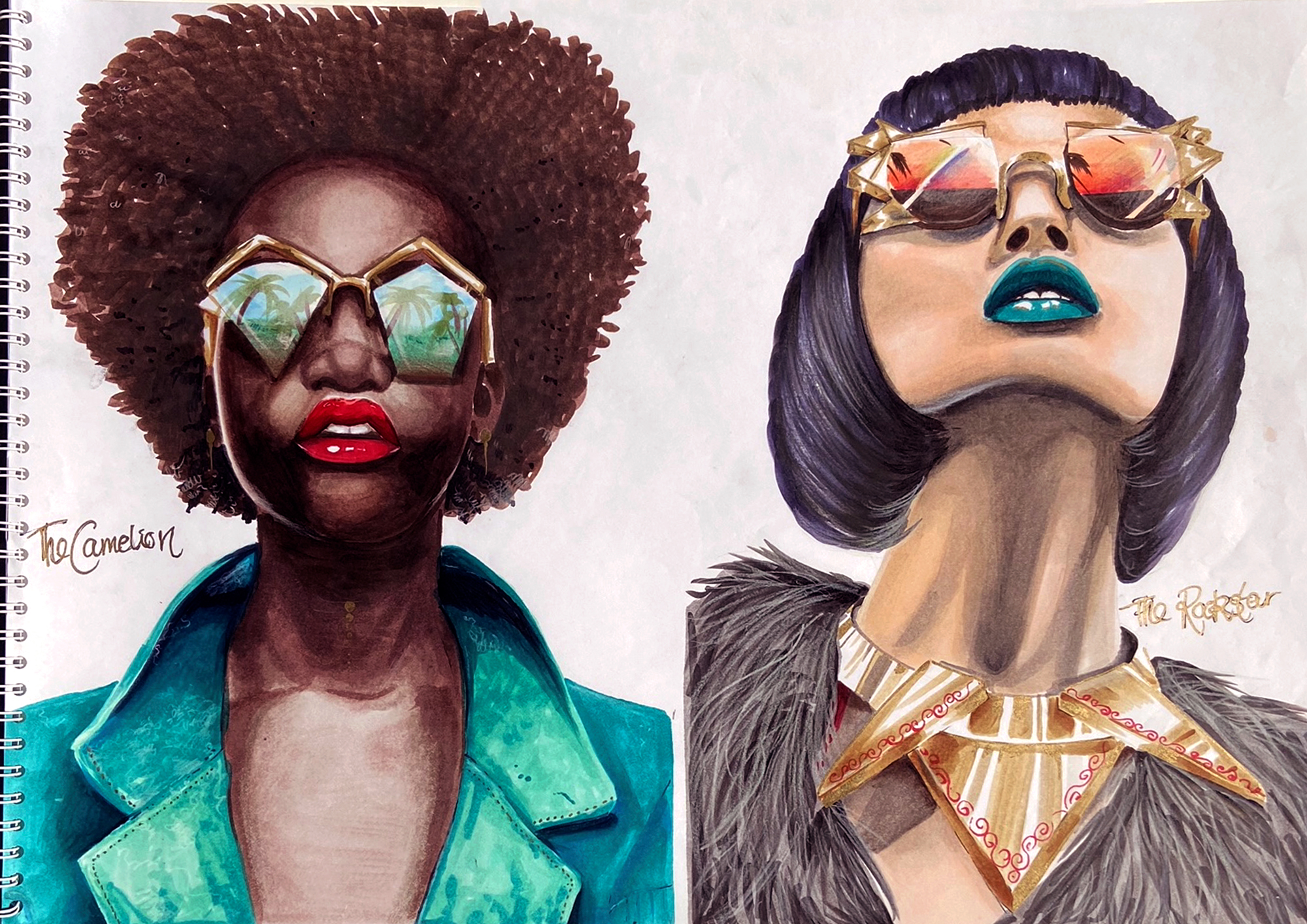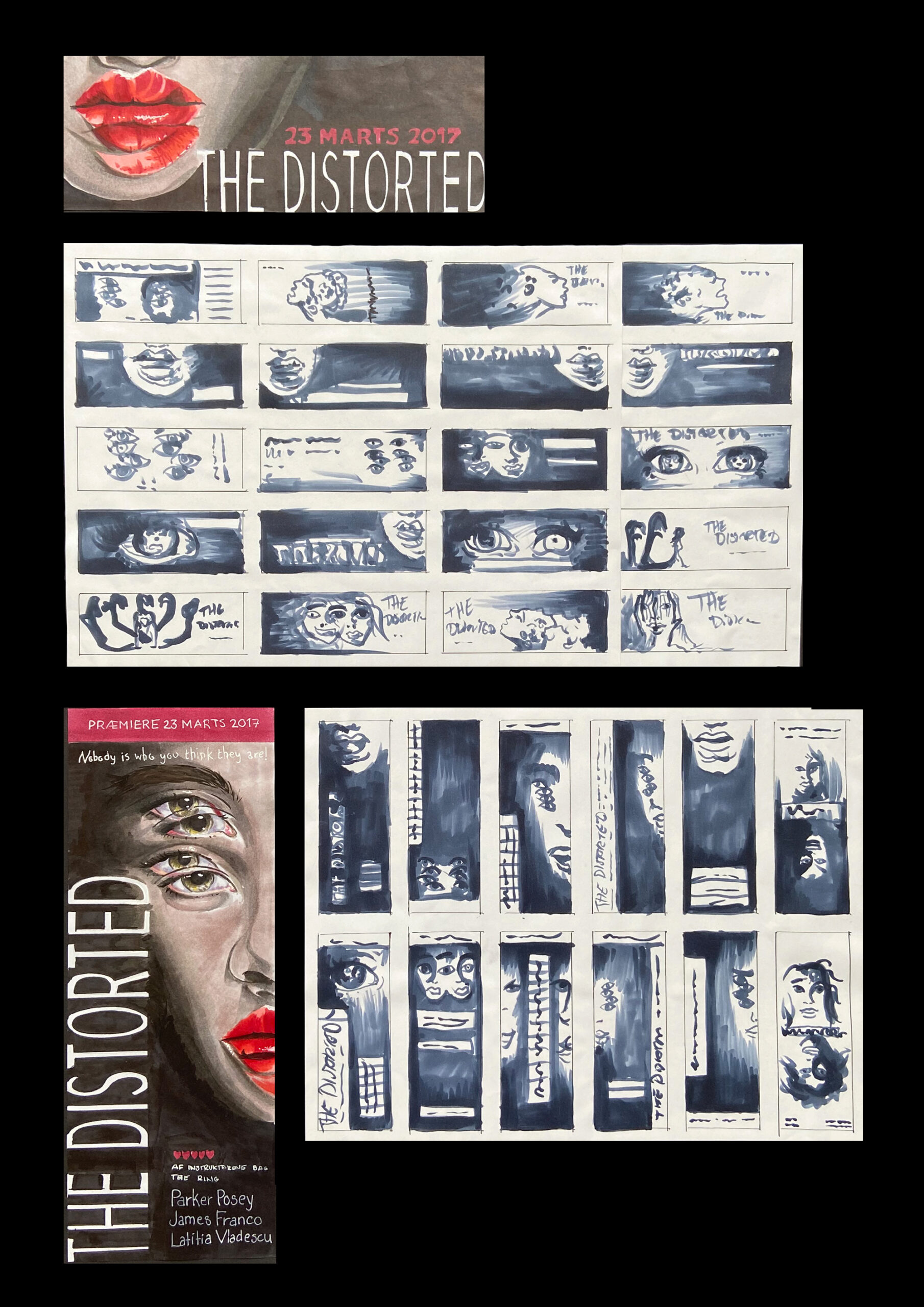 Skitsefase 1 + 2 er lavet med Copic Markers